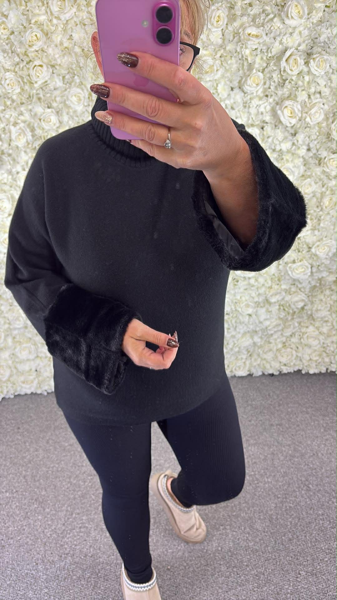 Beth - Faux Fur Sleeve Jumper 12 to 20