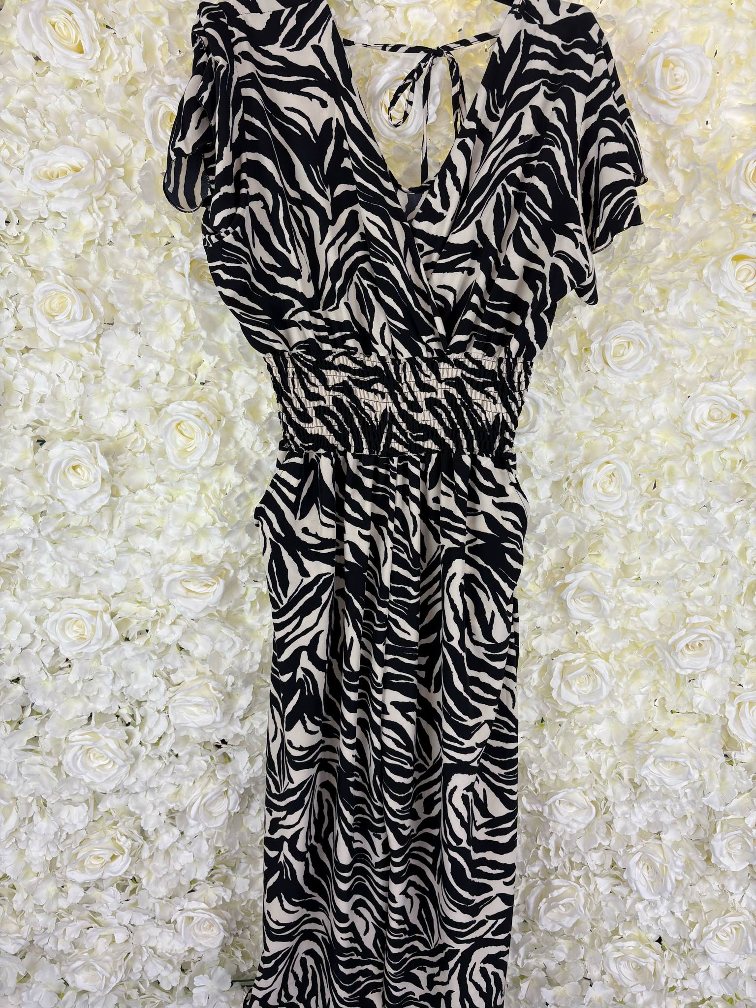 Perfect for the summer our new Hattie jumpsuit. In a wrap style with shirred waist and comes in both leopard print and zebra print. It's perfect for the warmer weather of on holiday. Plenty of stretch and super comfy. Don't miss out on this one.