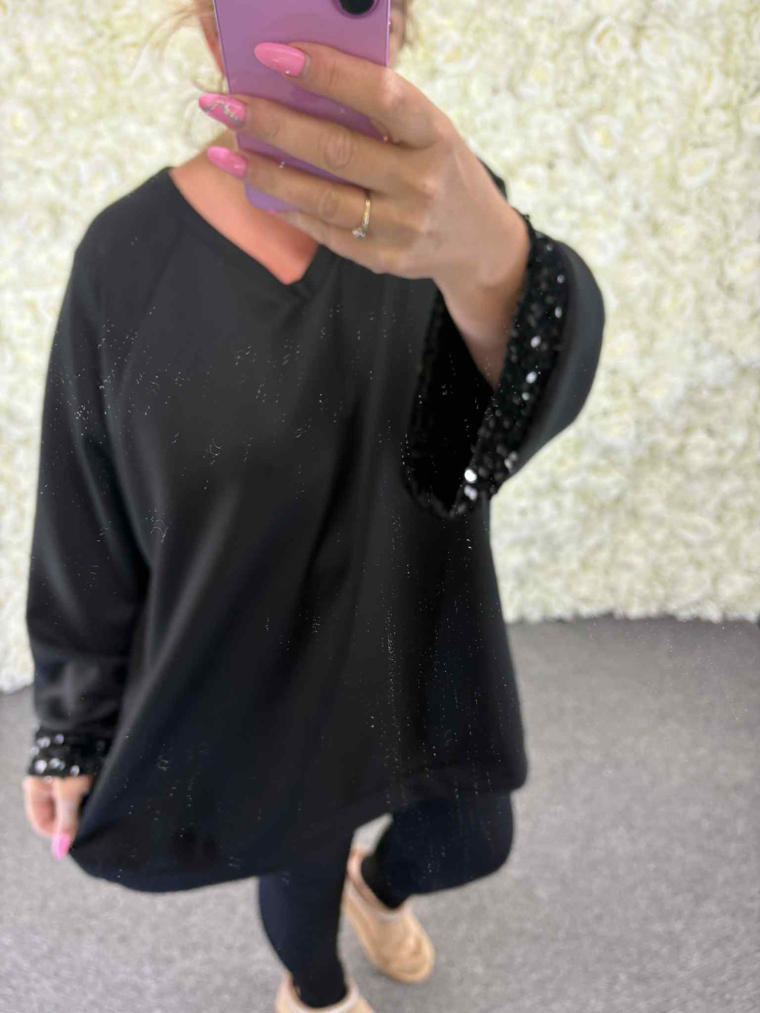 Perfect for the new season this stunning scuba material sweatshirt has that little bit extra that you have come to expect from Jane's Boutique withsequin arms tha really add to its appeal