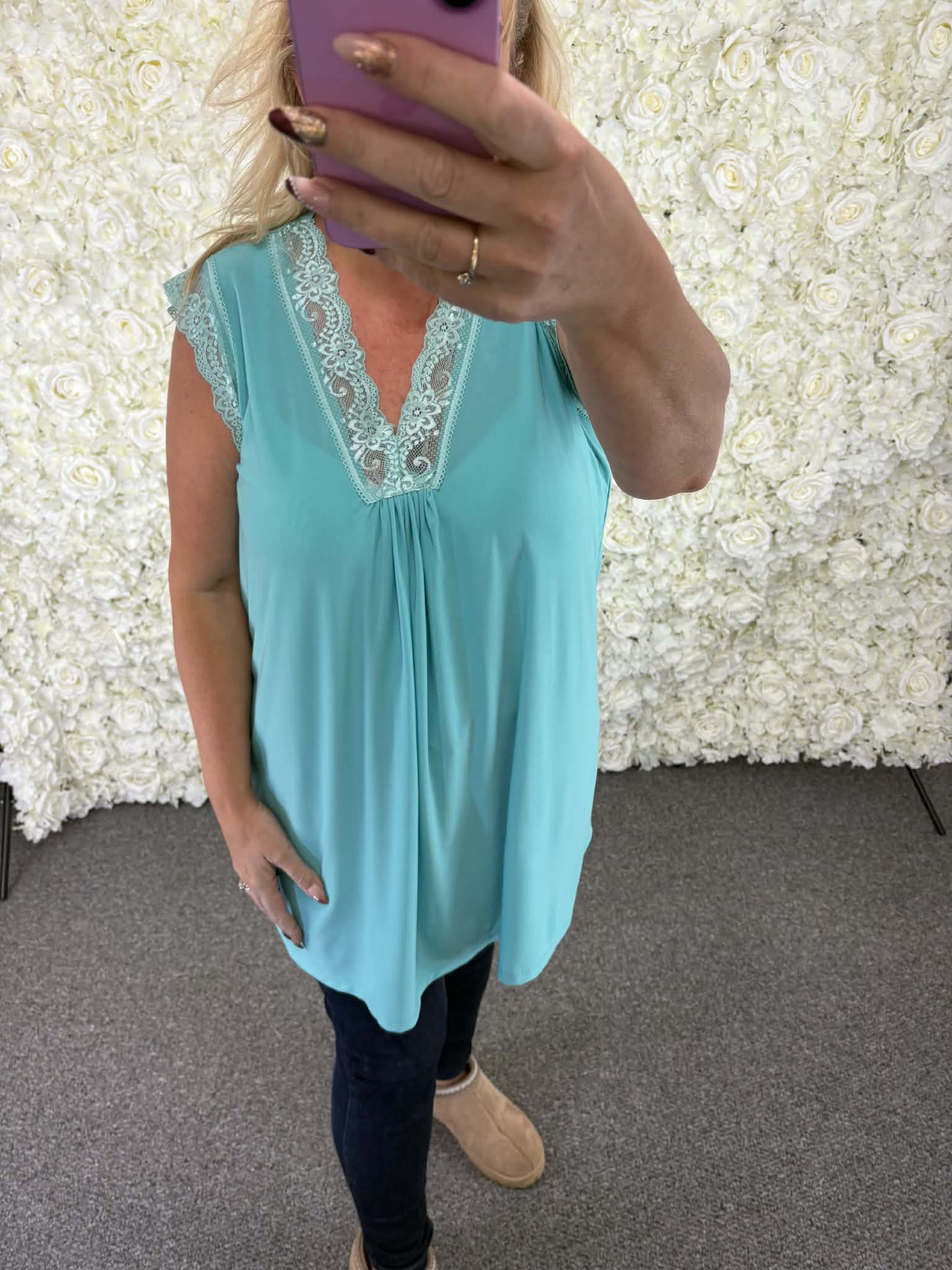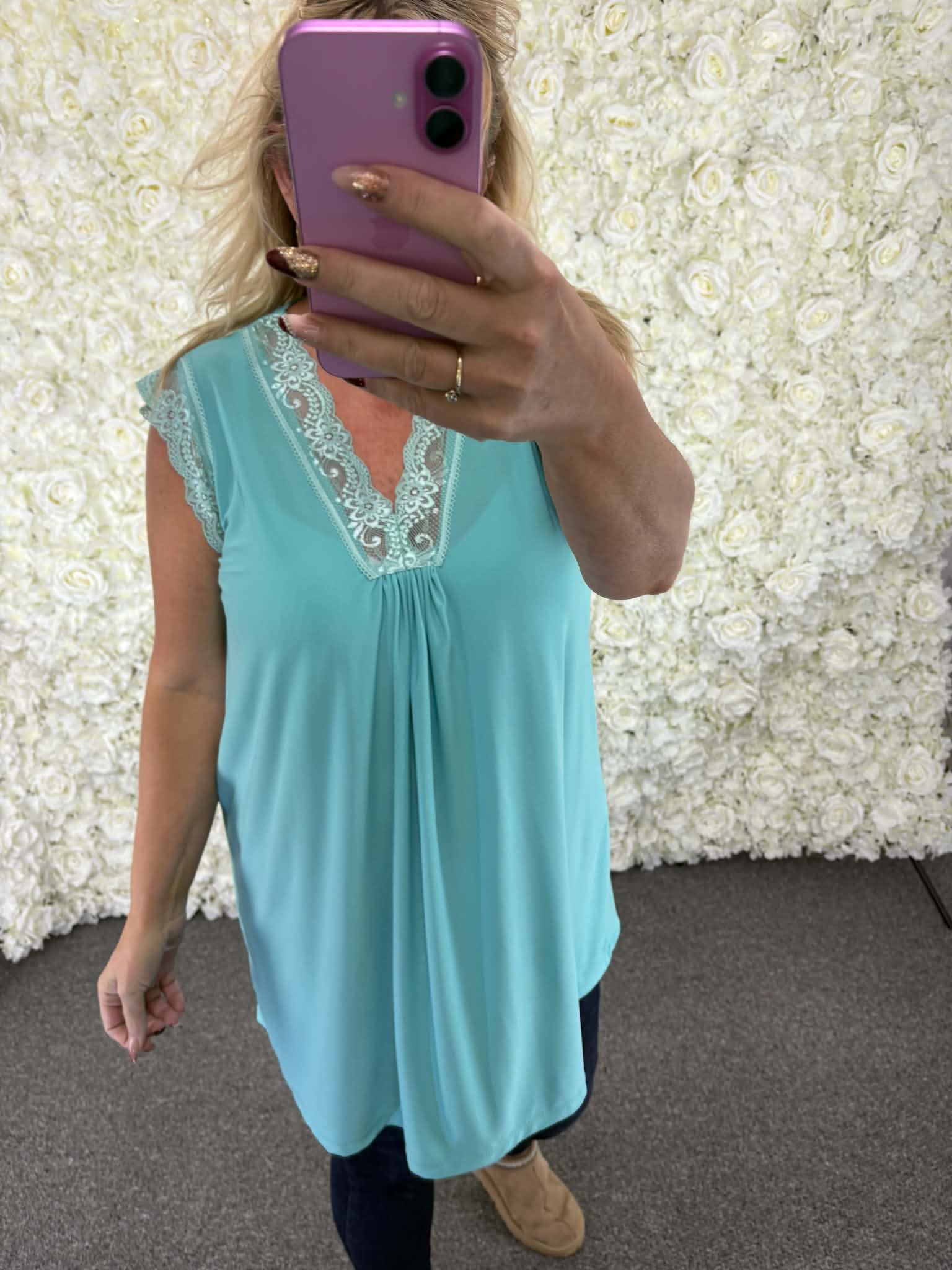 Super new top with a lace v neck and lace on sleeves