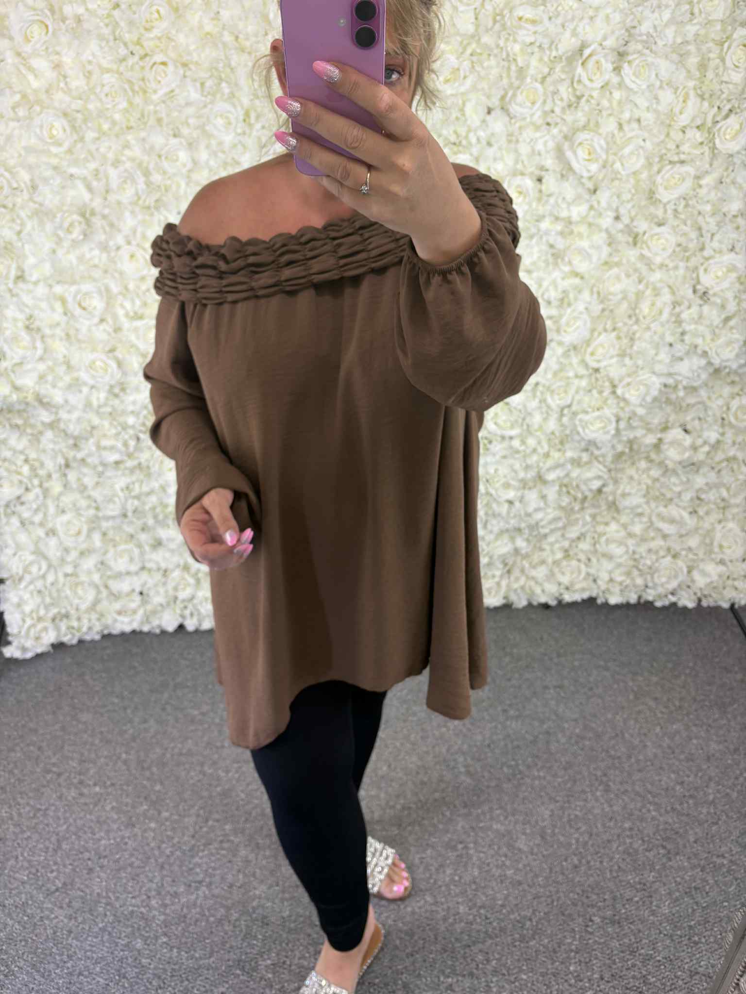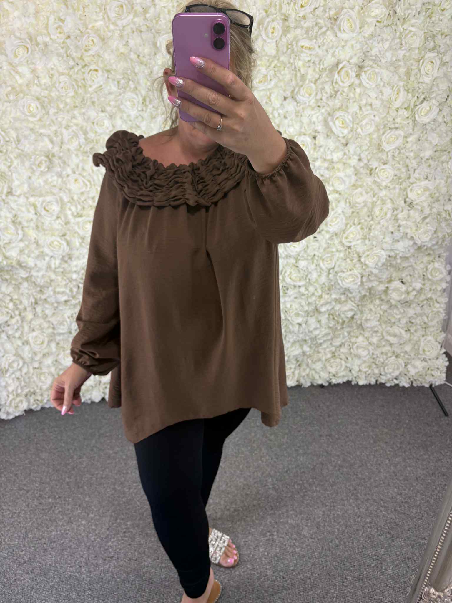 We are loving this cute on or off the shoulder blouse with stunning frill/ruffle detail around the top. Lovely shape and short sleeves. Perfect to wear either on a night out, holiday, party or just out shopping.