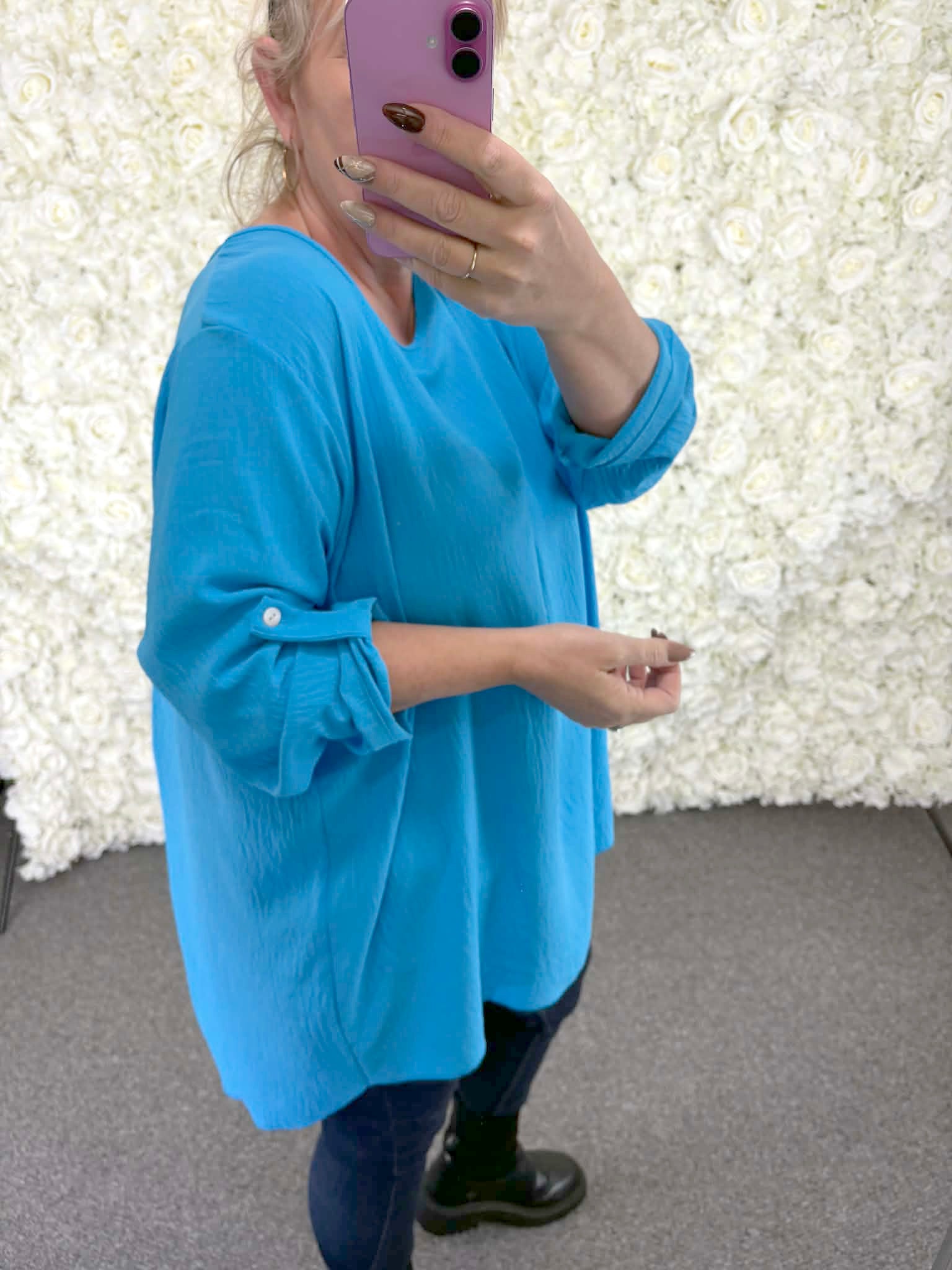 This is perfect as we come into the new spring season, our new Melody blouse is Italian made. It comes with pleated back and the sleeves can be worn either up or down to suit your style. We also love the length of this. Grab this now before its too late.