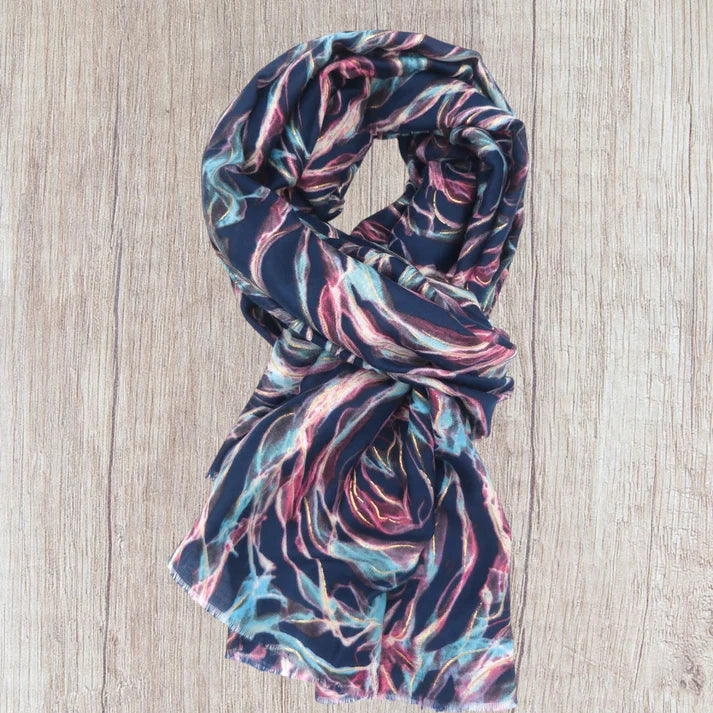 Nelly - Roses Flower with rose gold outlined Print Scarf