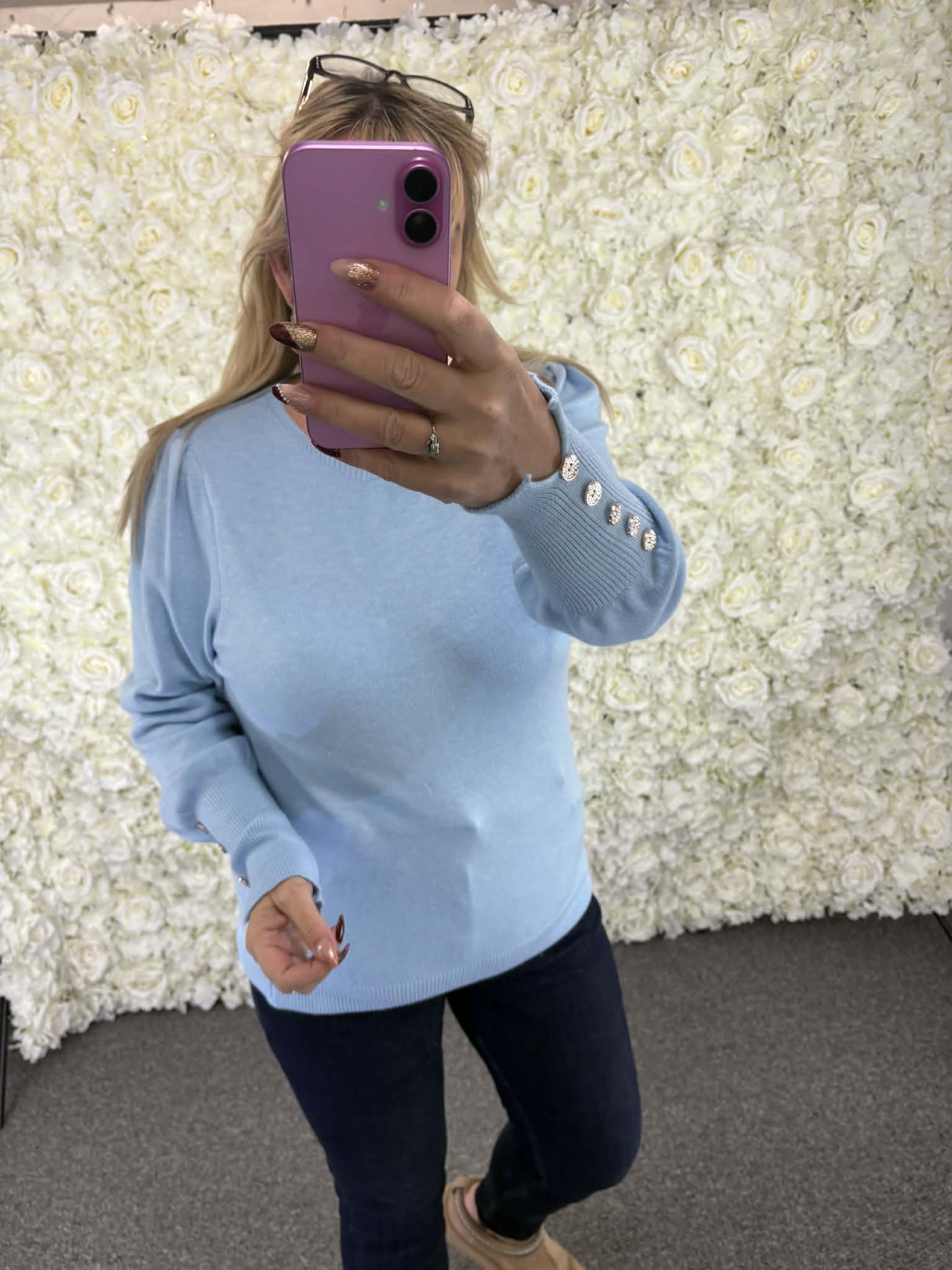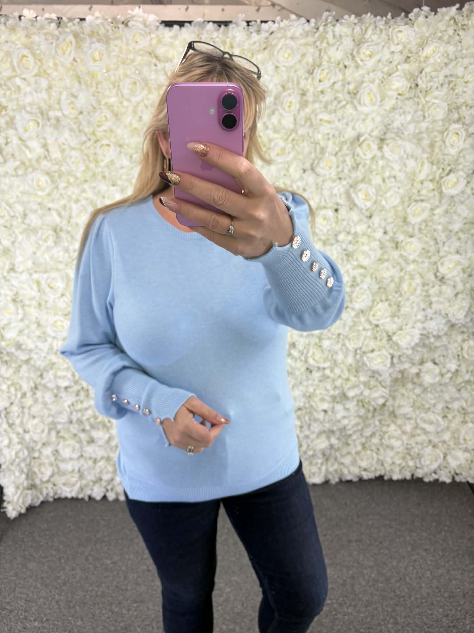 Super soft cashmere feel jumper with stunning button detail to sleeve