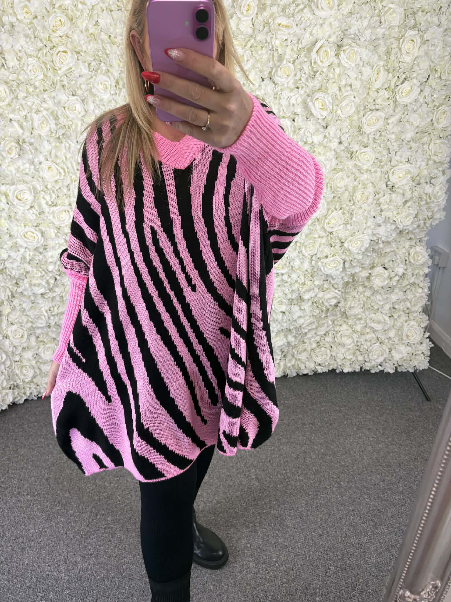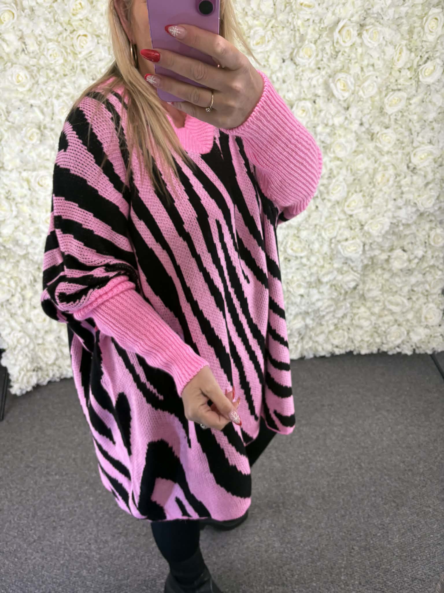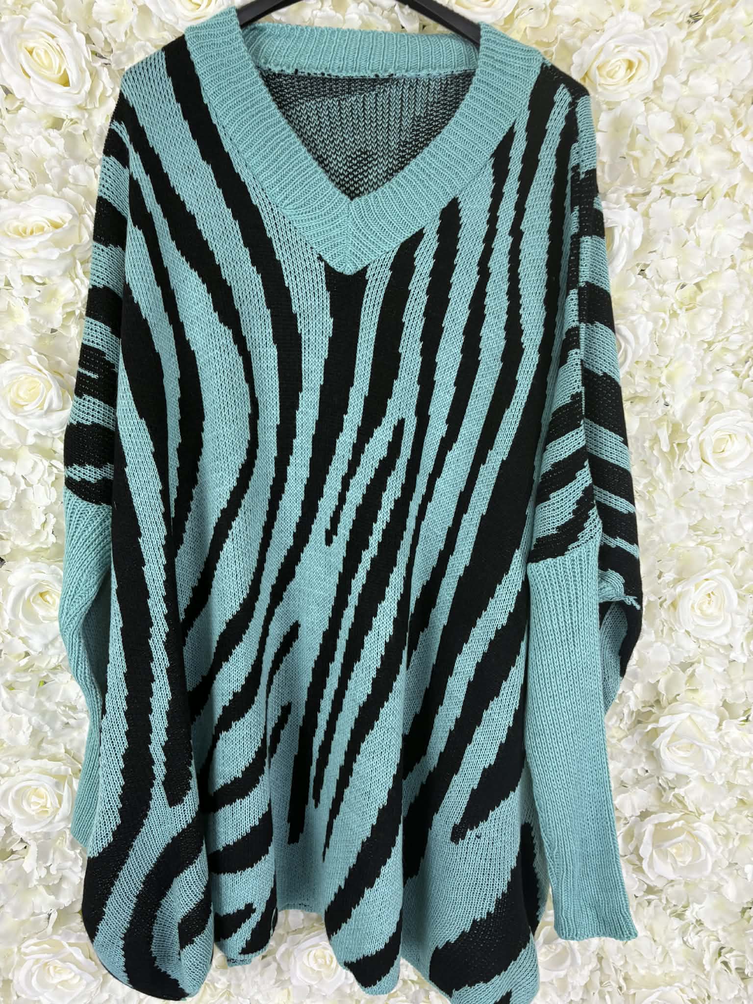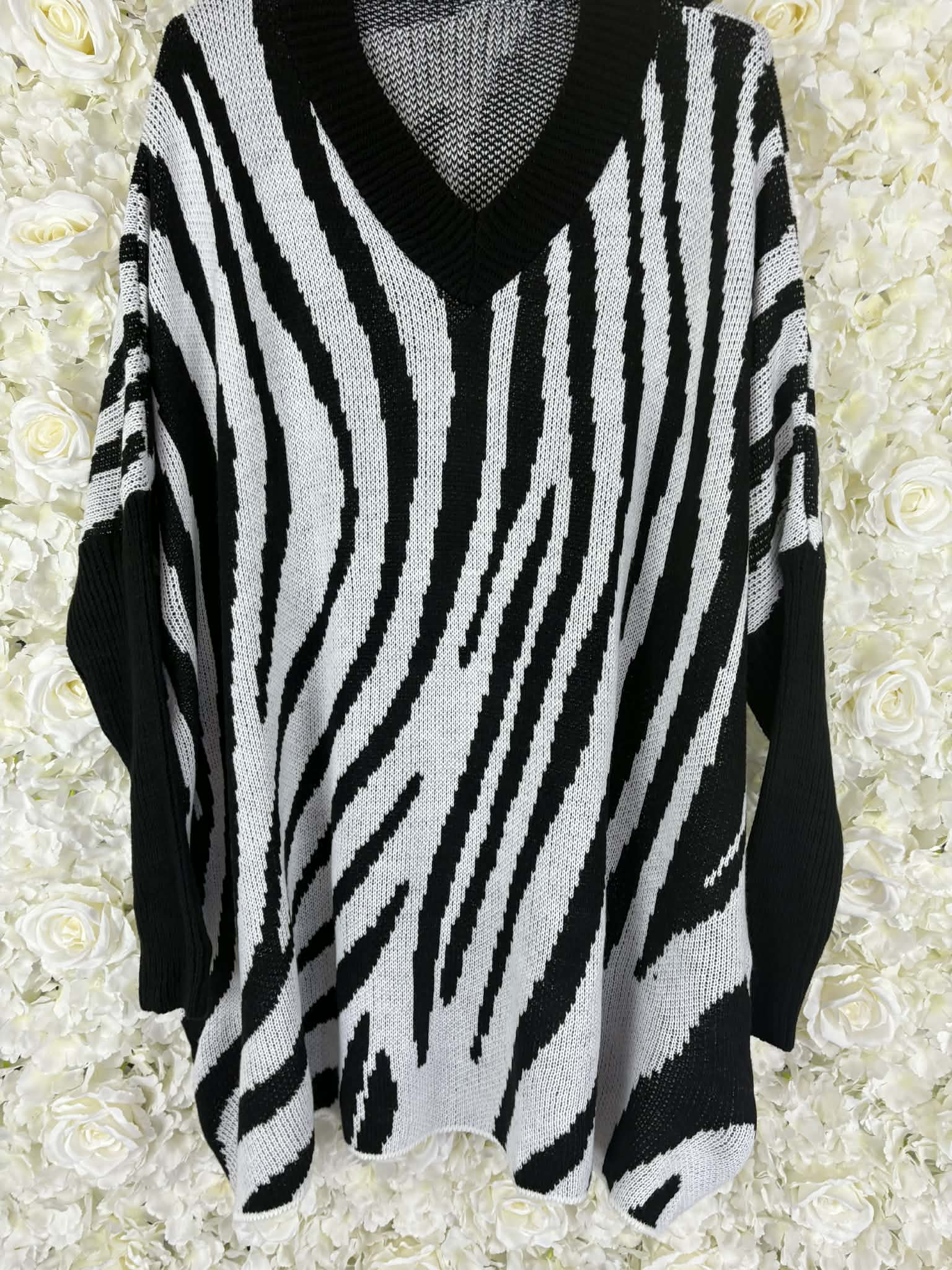 Super chunky v neck jumper with a zebra print