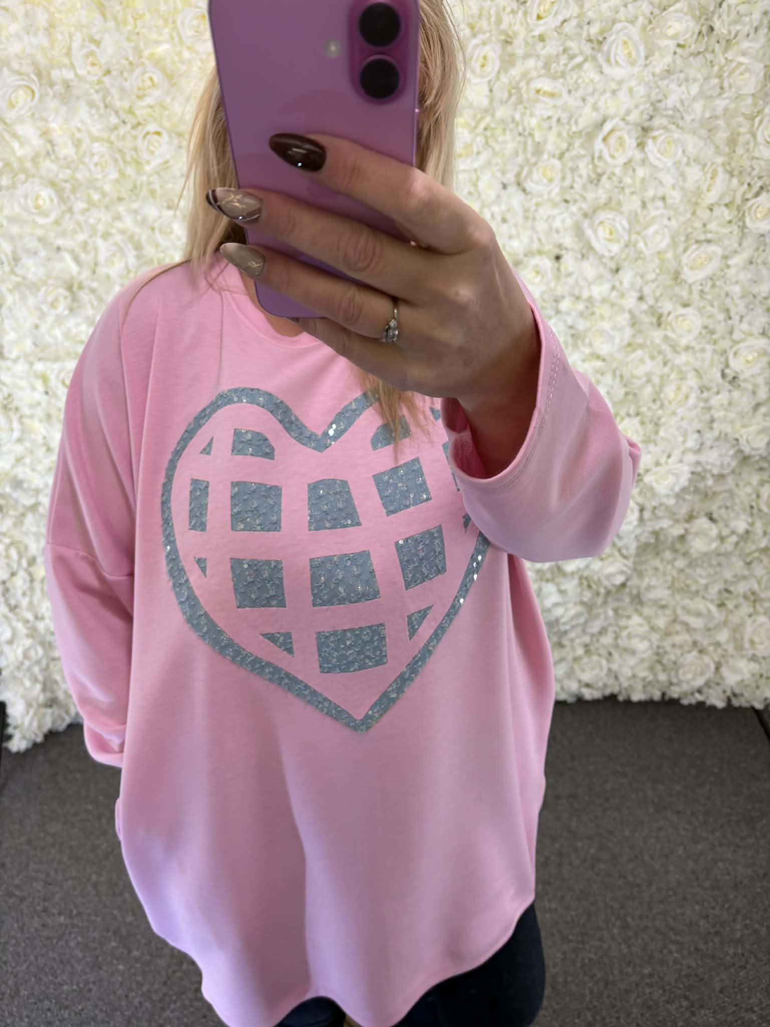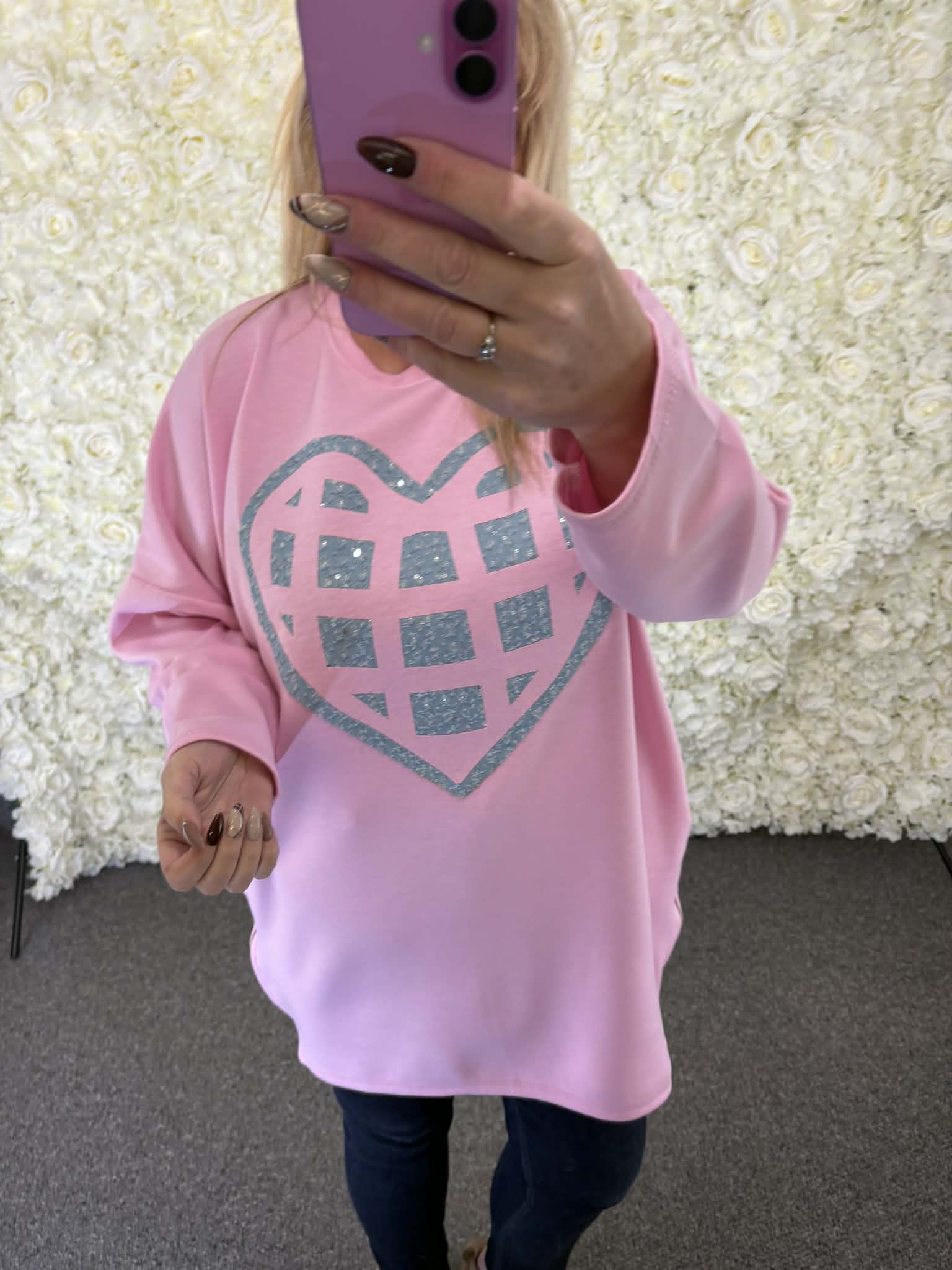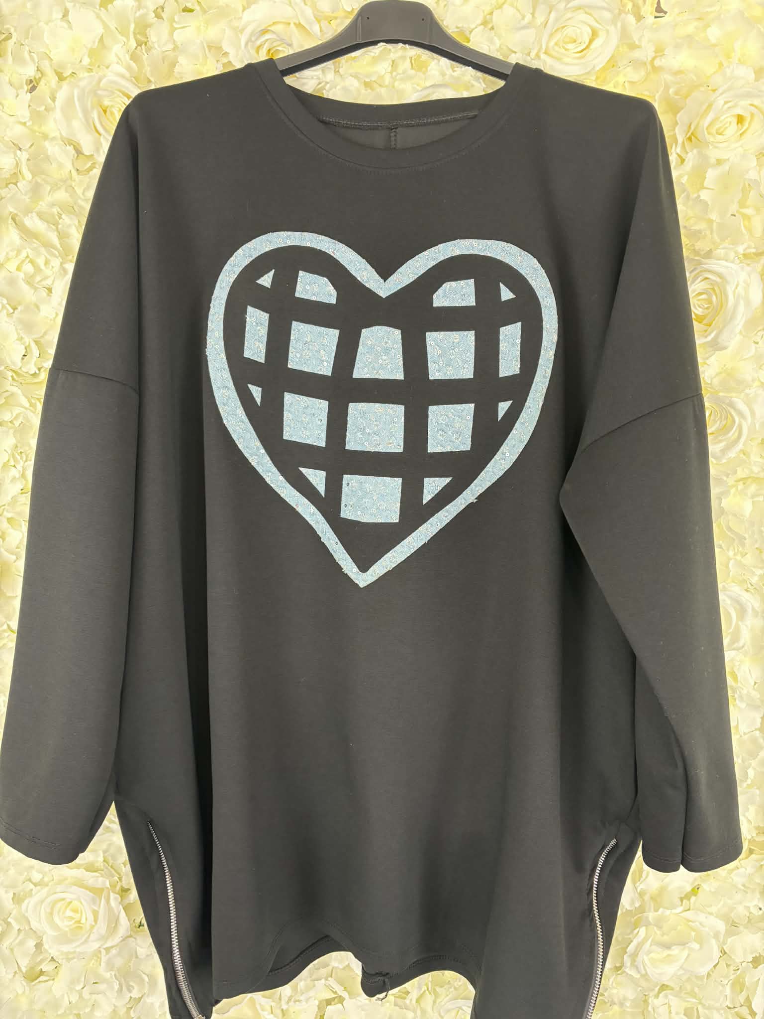 Gorgeous scuba feel sweatshirt with a heart with denim and sparkles