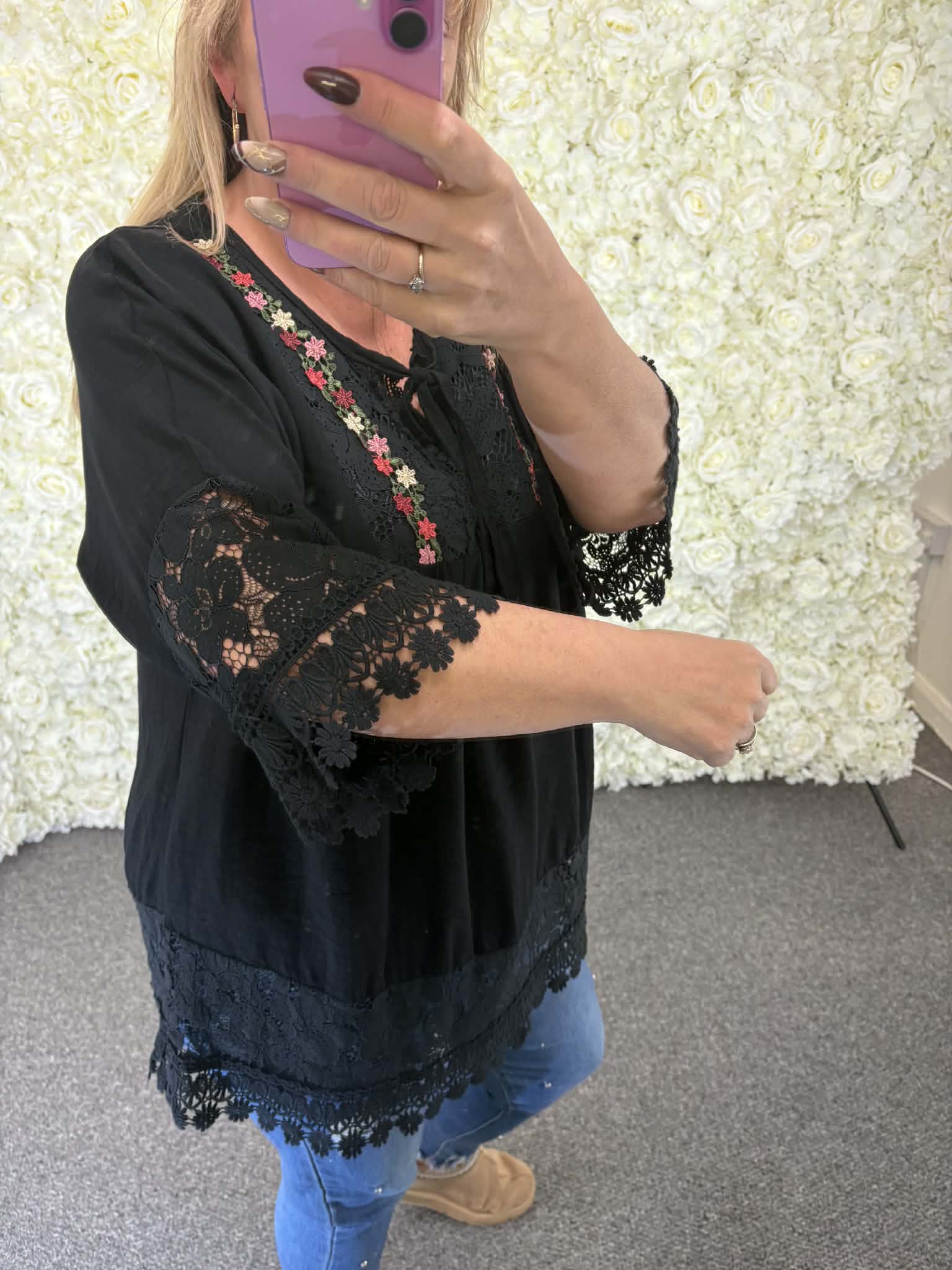 So pretty, our new Sienna top. Beautiful intricate lace work with additional multi colour detail. This is great for spring/summer and perfect for holiday. Grab these before they are gone.