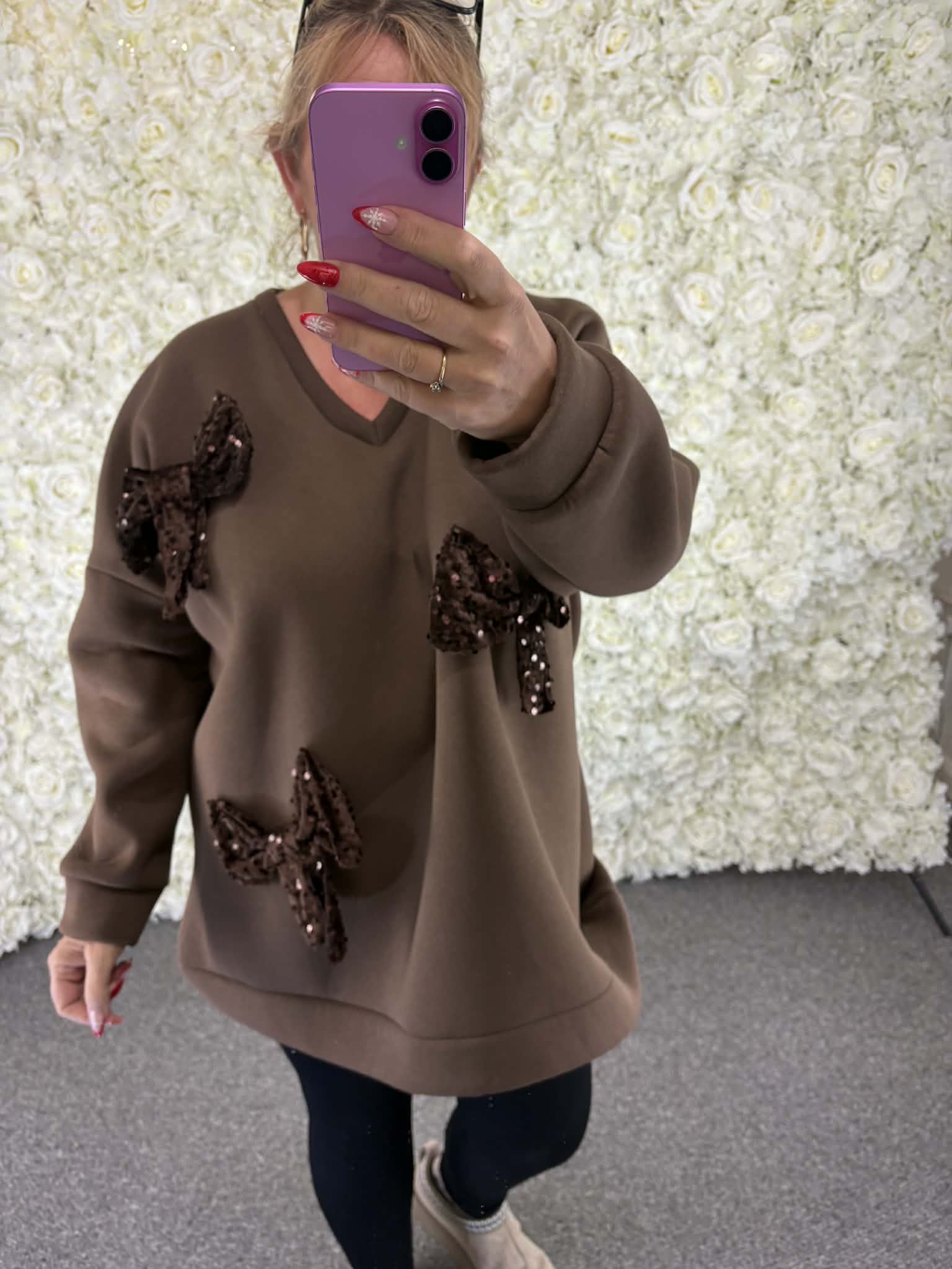 Super soft and chunky our new sequin bow sweatshirt