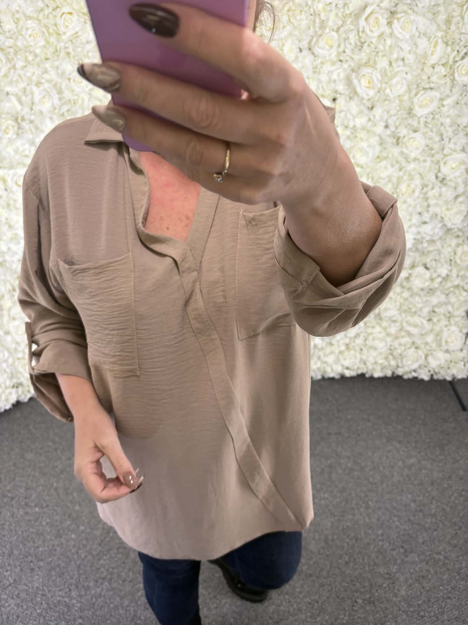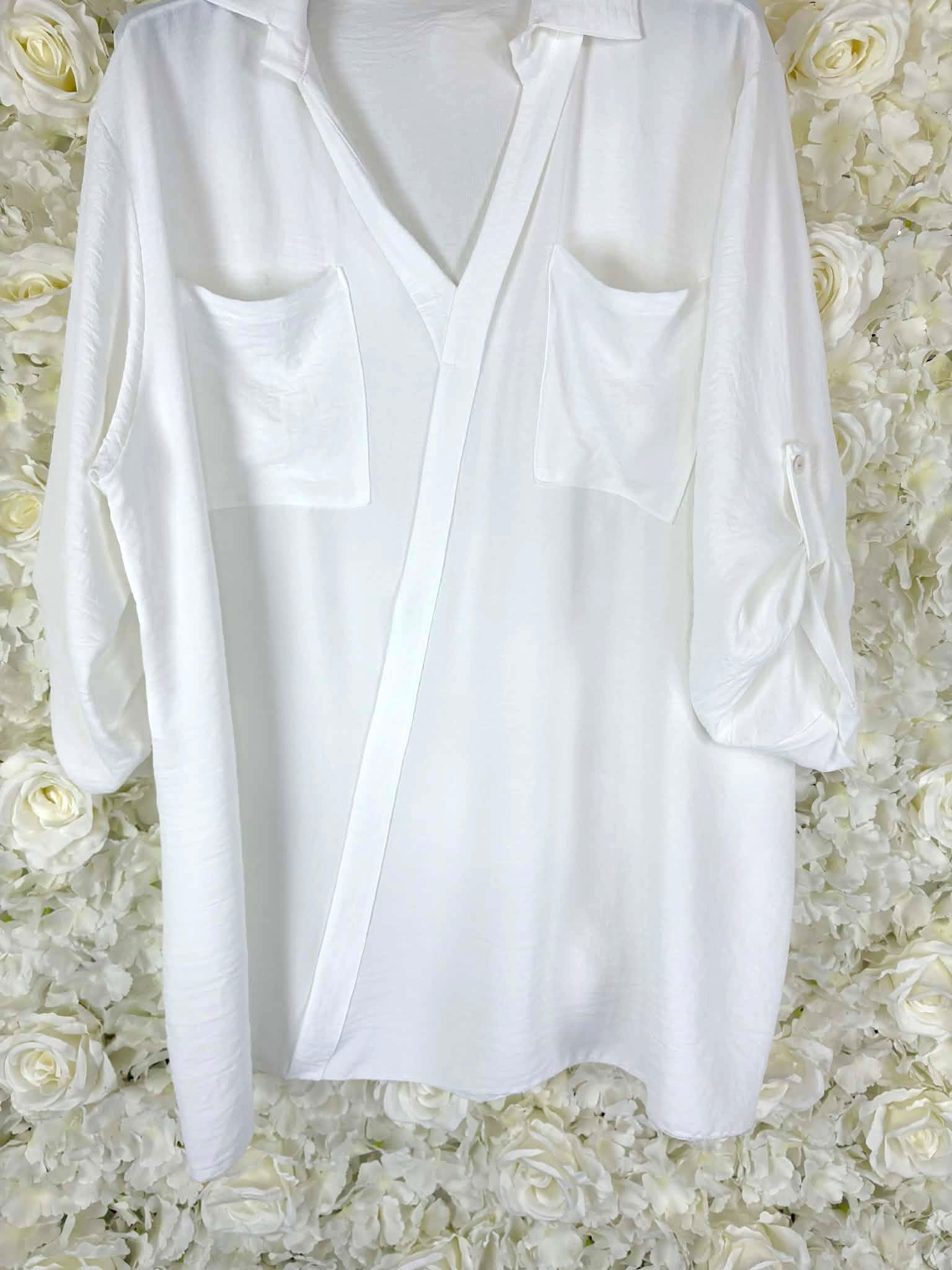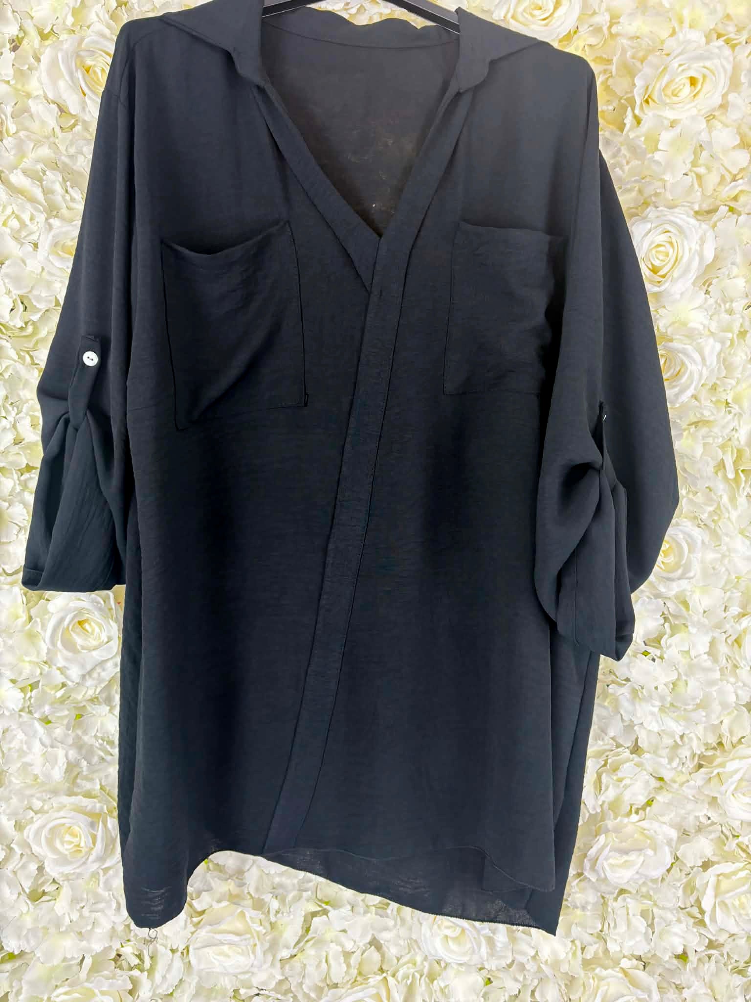 Another stunning new arrival for the new spring season, our new Talia shirt is Italian made. It comes with stylish pockets to the front, V neck and the sleeves can be worn either up or down to suit your style. We also love the length of this. Grab this now before its too late.