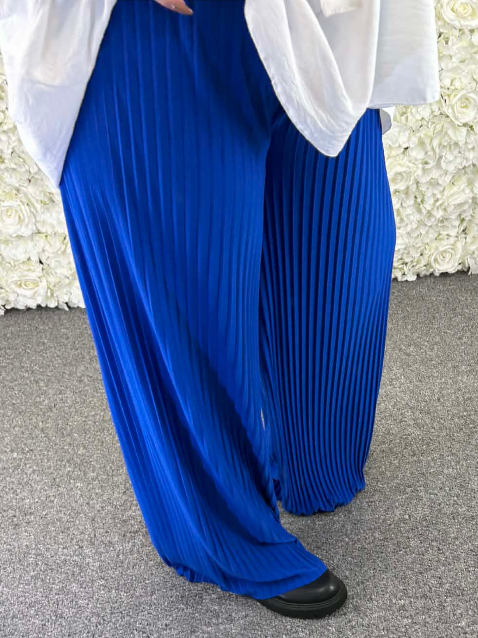 Stunning new super soft, super stretchy wide leg pleated trousers. Made for comfort with elasticated waist. These are great to wear casually, wear on holiday or dress up for an evening  out.