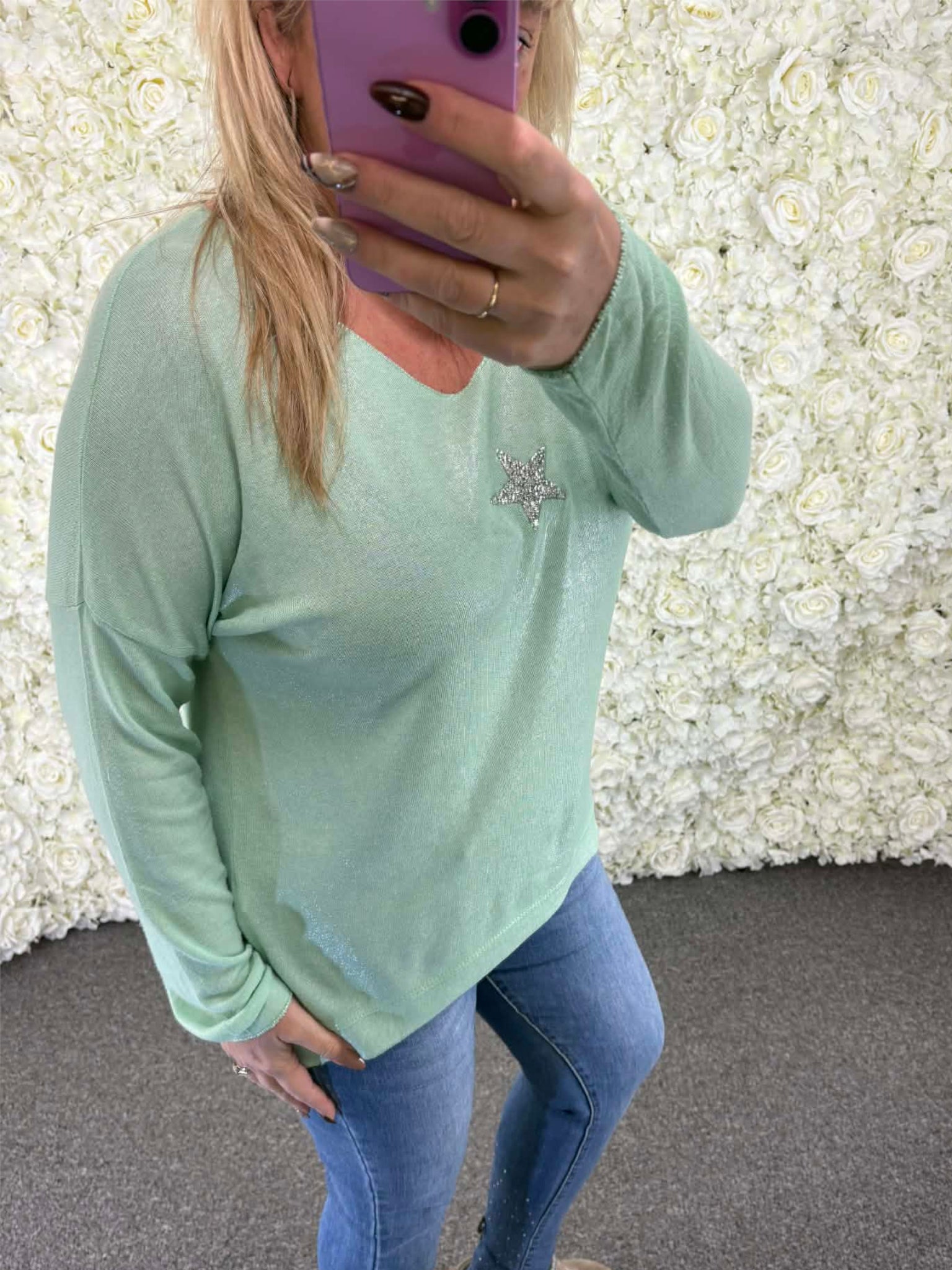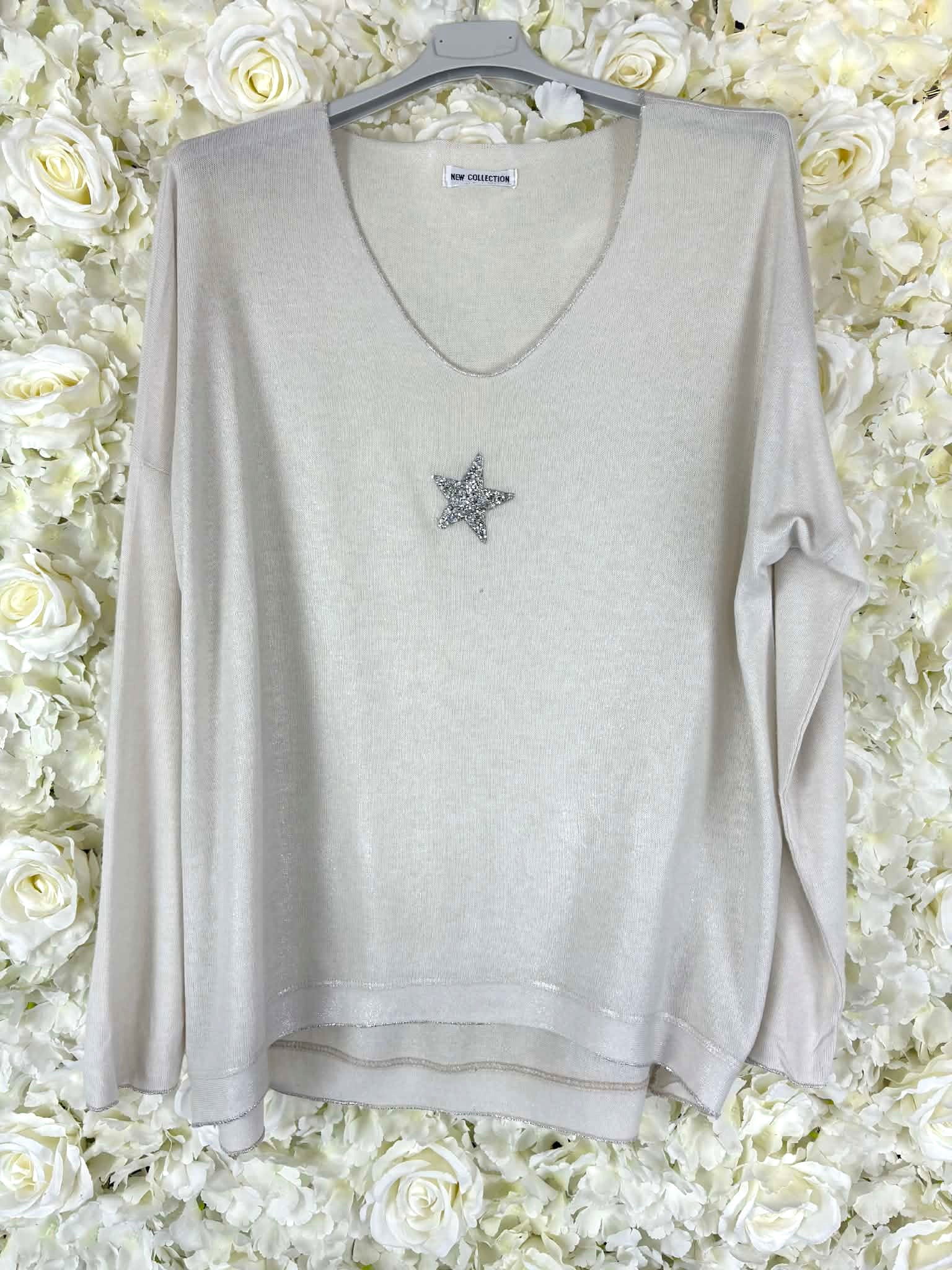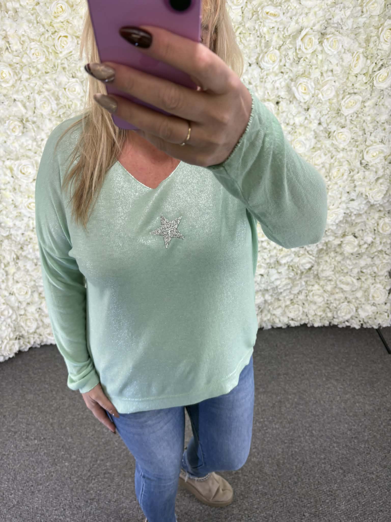 Love, love, love our new Westone fine knit top. Perfect for the spring, it features a glitter star to the front and hopefully you can see the shimmer that runs right through the garment finished off with silver threads around the hem. This is definitely one to turn heads. Grab it now before its gone.