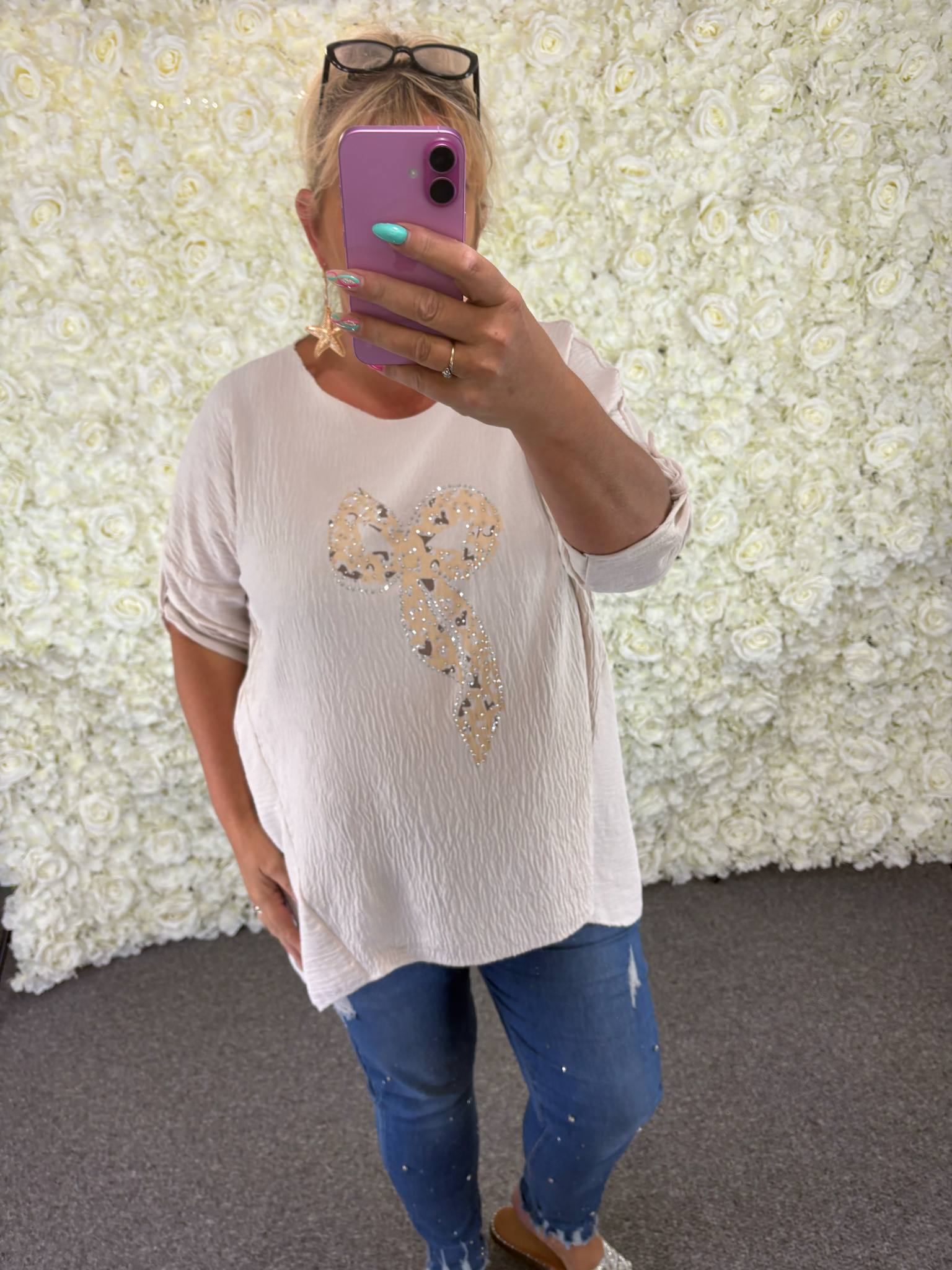 How nice is this bow blouse with the added sparkle detail