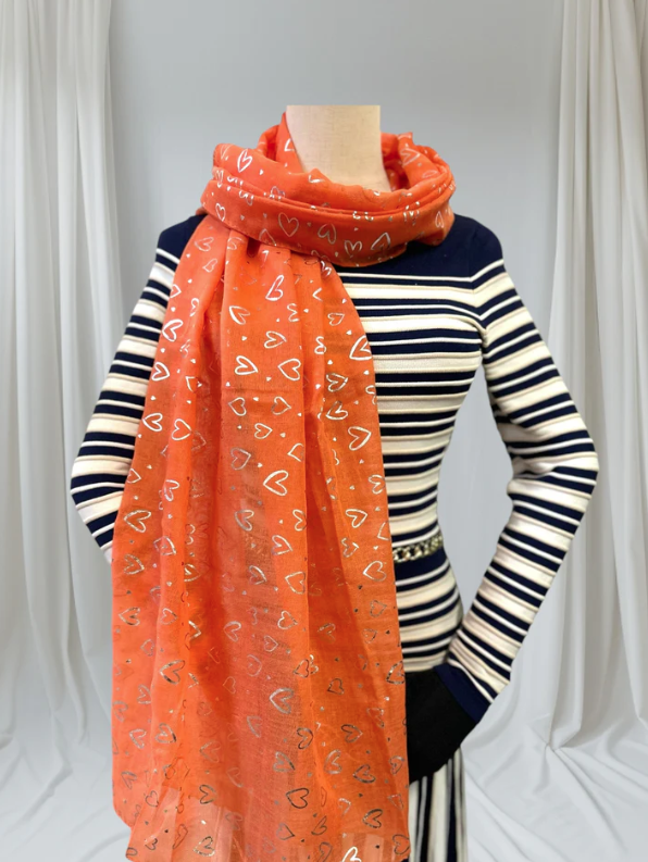 Zania - Glitter Foil Heart Print Scarf